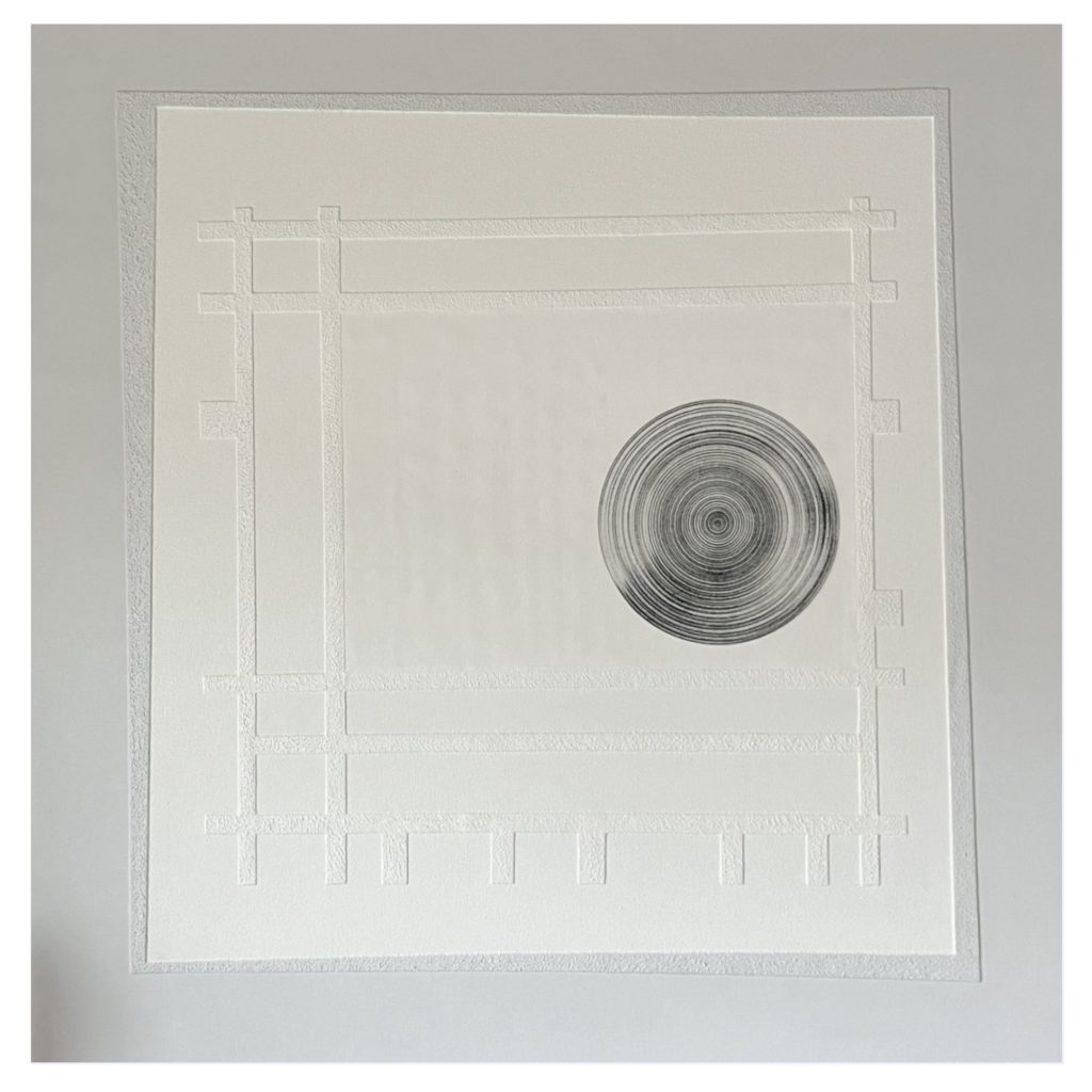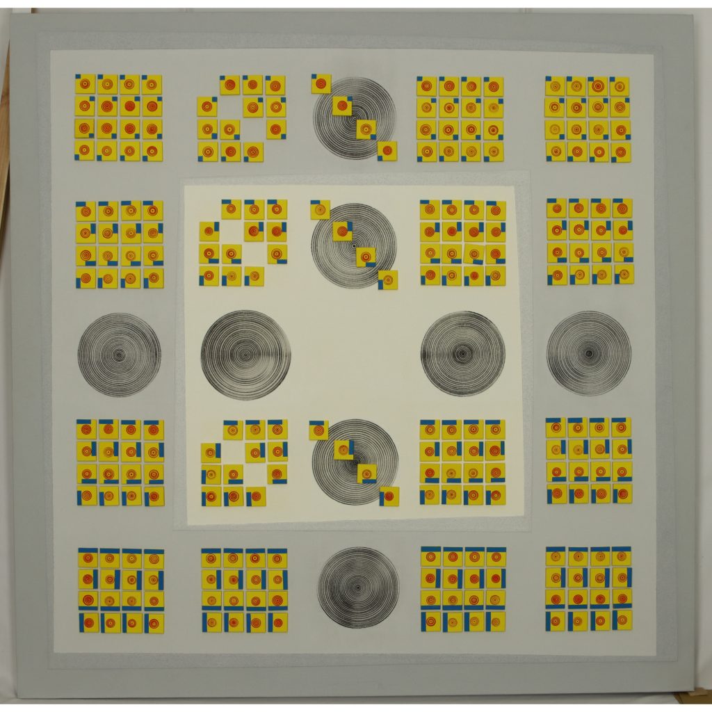 – Konkrete Kunst mit den typischen Jot-Stil-Elementen: Kreis, Spirale, Quadrat, schiefes Viereck